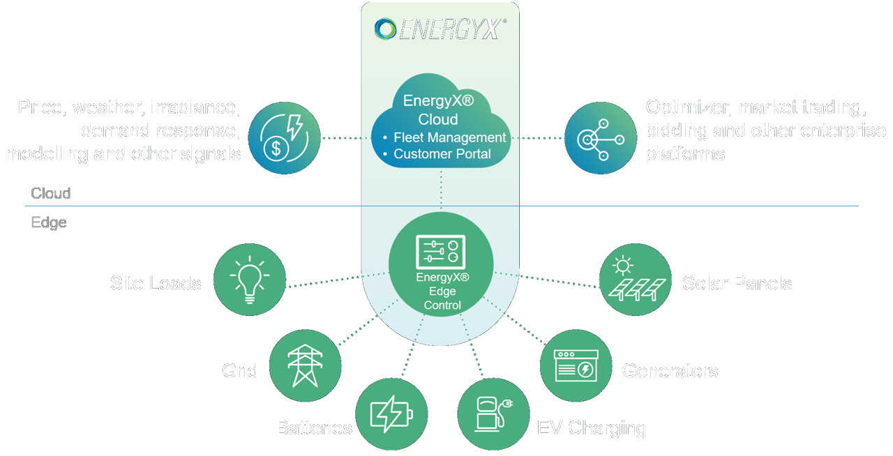 The foundation of EnergyX® is a powerful edge platform that monitors & controls onsite energy assets, with or without a cloud connection. The cloud platform provides a rich user experience for managing multiple energy objectives and programs. Integration with other cloud and enterprise platforms extends the power of EnergyX® to unlock your entire energy ecosystem.